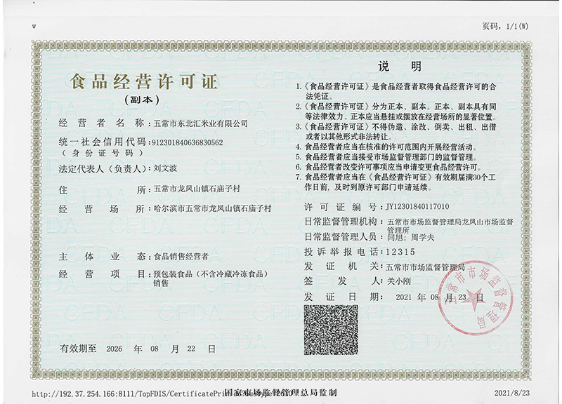 做米,就是做良心 您現(xiàn)在的位置:網(wǎng)站首頁 > 走進(jìn)我們 > 資質(zhì)榮譽(yù) 公司簡介 領(lǐng)導(dǎo)致辭 資質(zhì)榮譽(yù) 企業(yè)文化 營業(yè)執(zhí)照副本 食品生產(chǎn)許可證副本 食品經(jīng)營許可證副本 證明商標(biāo)準(zhǔn)用證 中國品牌放心米 中國3.15誠信企業(yè) 共20條記錄 當(dāng)前為第4頁/共4頁上一頁1234下一頁
